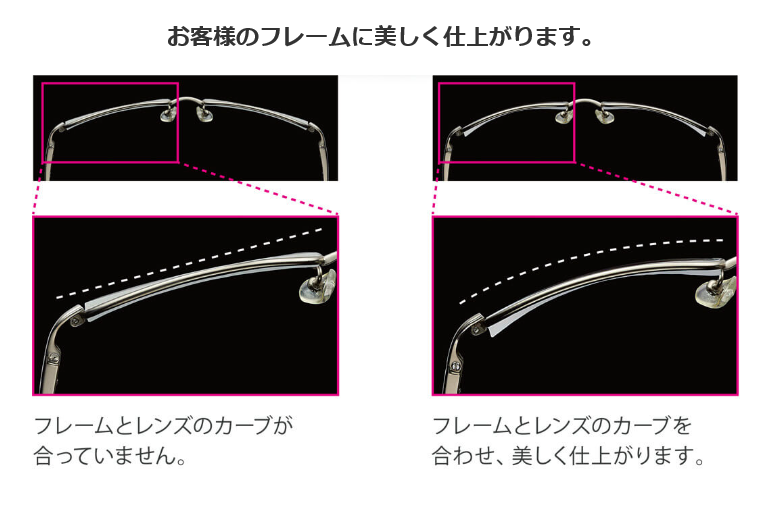 このフレームにフラットな通常カーブのレンズを入れてしまうと、形が崩れてしまったり