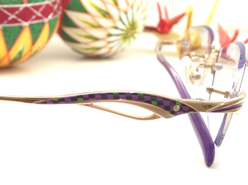 七宝を使ったチェック柄のテンプルは女性を明るく健康的に見せてくれます。