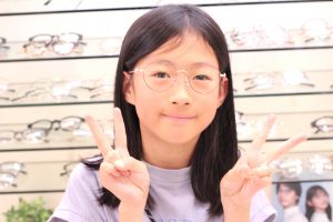 先日初めての眼鏡をお作り頂きました小学4年生のSちゃんです💛