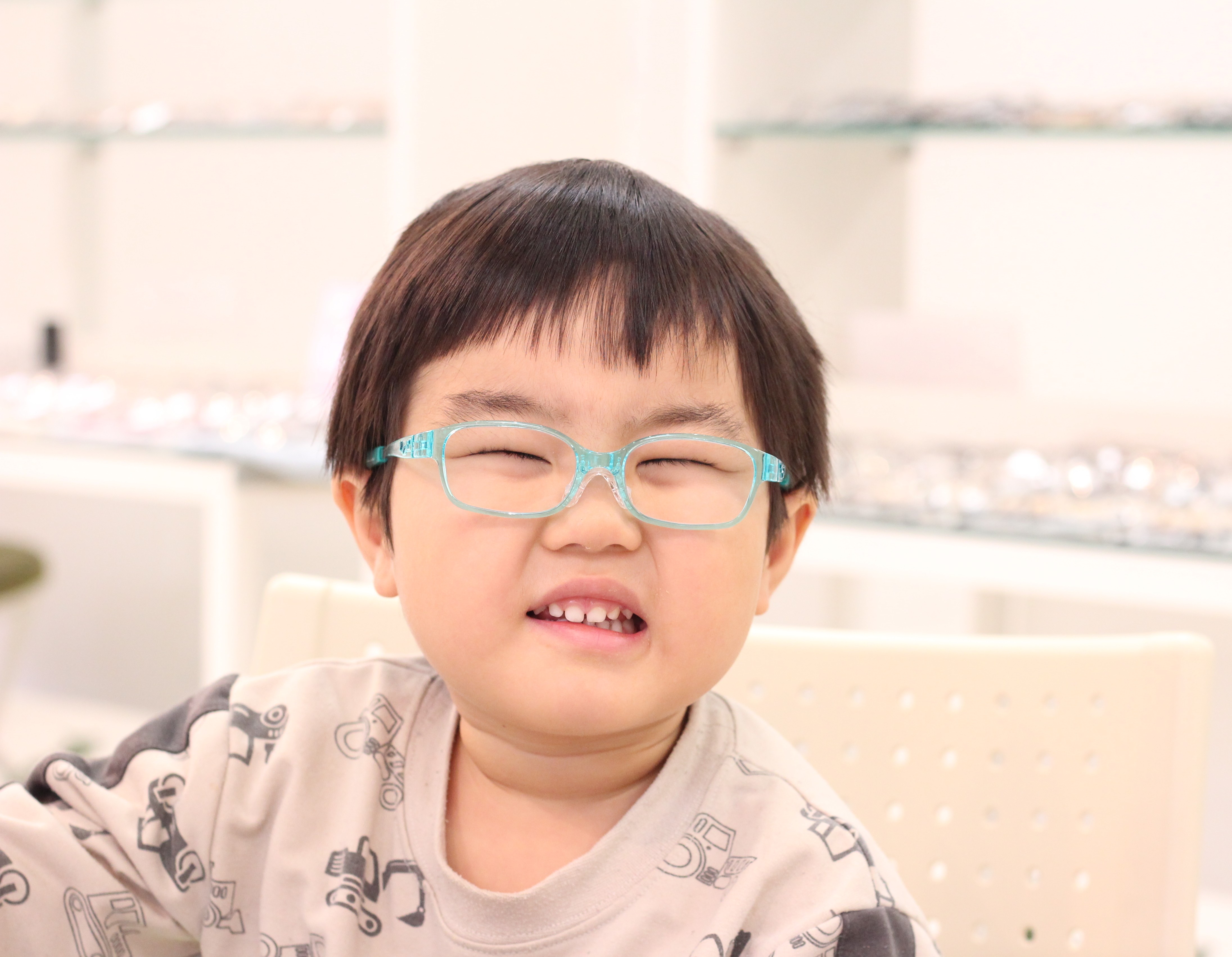 先日初めての眼鏡をお作りいただきました3歳のHくんです😊