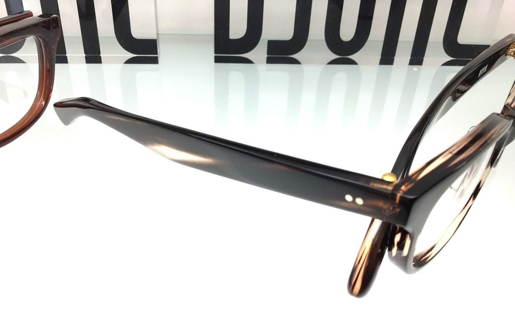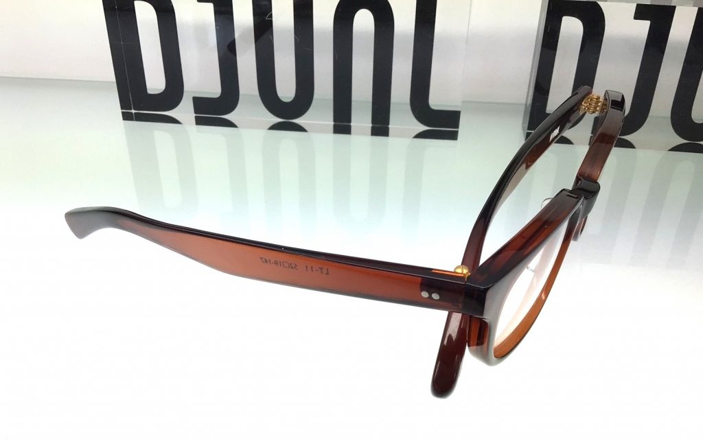 テンプルに芯金がないので、横から見たとき、セルロイドの透き通った生地が綺麗に映えます。