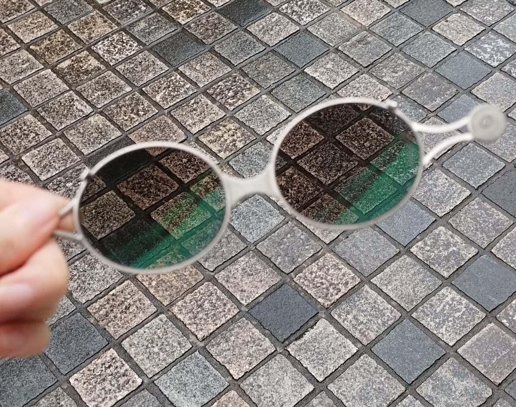 サングラスをかけていない状態だと地面が濡れて反射して見えます。